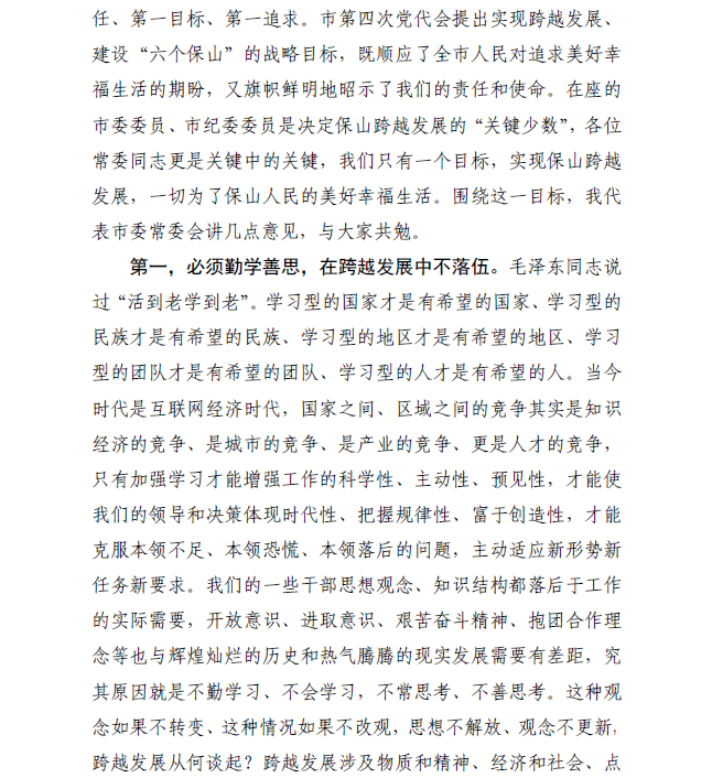 赵德光同志在市委四届一次全会上的讲话