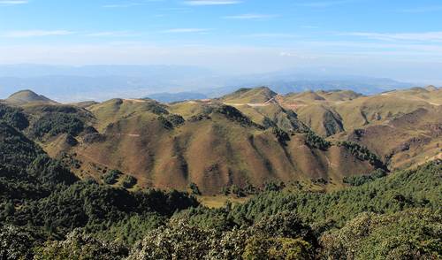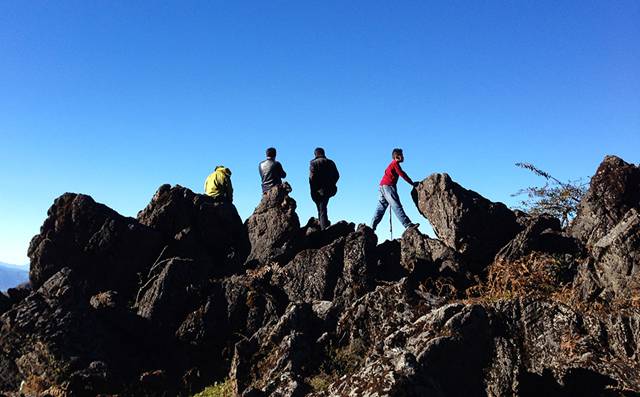 在翻越10多座小山峰后,你就踏进了四大山的最高山峰——大水河头山。大水河头山因海拔较高,树不是很多,山麓有大水河而得名。站在山顶高台上,背靠蓝色的天幕,俯瞰施甸坝,远眺昌宁,再侧首是延绵的保山城,这种一览众山小的气势,让四大山显得更加的豪迈和慷慨。