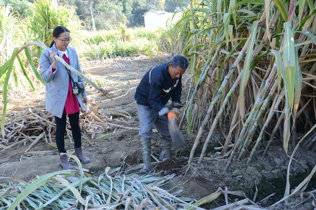 吃完荸荠,我们又踏上了寻觅美食的征程。沿着村道驱车往东北方向行近一公里,路过东山寺迎面而来的是富裕华丽的一个小区!对,没错!是一个移民搬迁新建的小区。呃,有点儿跑题,好吃的不在小区里,而是小区外那一大片甘蔗地!这里的甘蔗就是大名鼎鼎的脆心甘蔗啊!