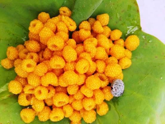 布谷鸟送来了黄果儿泛黄的讯息。我们邀约上山,在时光的隧道里找寻着黄果儿树生长的位置。“我记得石场旁有一大蓬,摘黄果儿时还遇上过蛇呢。”“不对,遇上蛇那次是在响水凹河底。”“哪有,明明是石场旁。”大家七嘴八舌地议论着着,真伪难辨。此时,一棵结满果实的黄果儿树丛闯入眼帘。明亮鲜艳的黄果儿压弯了枝条,大家争先恐后地去摘。黄果儿呈金黄色,轻轻摘下它里面凹了进去,像一顶圆帽子,也像一个个倒扣的小盆。摘一颗放进嘴里汁肉柔软,酸酸甜甜,口感醇厚。一颗颗吃,实在不过瘾,便一大把揉进嘴里,满口盈溢着酸甜果味,余味无穷。